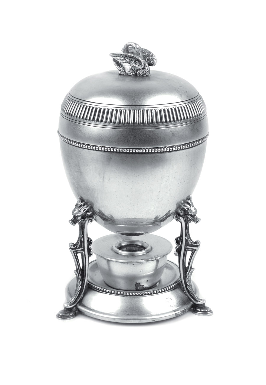 SCALDINO PORTA UOVA IN SHEFFIELD Inghilterra, inizio XX h. 21 cm.