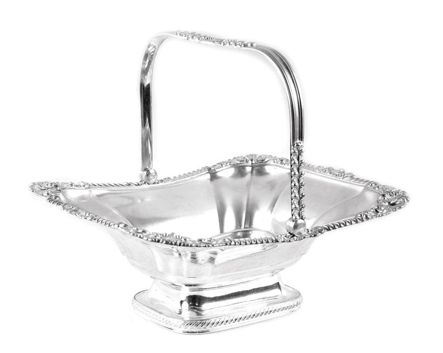 CESTO CENTROTAVOLA IN METALLO ARGENTATO XX Sec. profilo e manico inciso a...