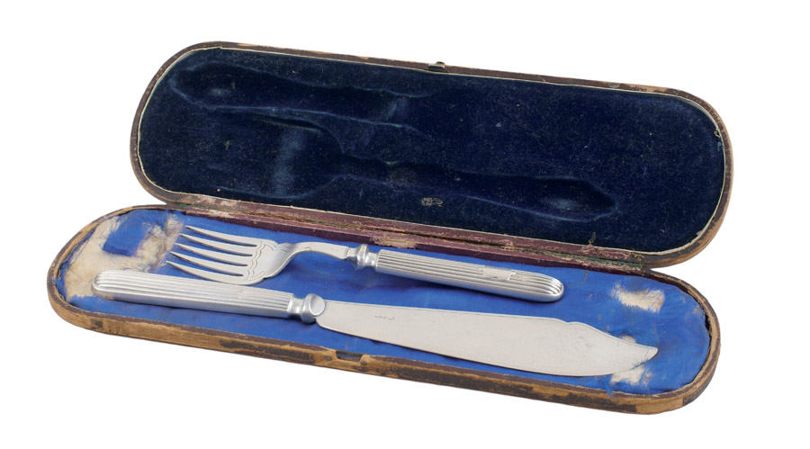 COPPIA DI POSATE DA DOLCE IN SHEFFIELD Inghilterra, XIX Sec. entro custodia