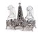 OLIERA IN ARGENTO manifattura europea, XIX Sec. sbalzata e decorata a motivi di putti alternati a ghirlande floreali, con due ampolle in vetro, cm.14x16x9 peso 180 gr.