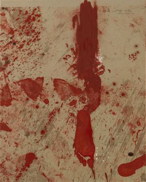 NITSCH HERMANN Vienna 1938 Secession 1987 Tecnica mista su carta su tela 84x66 cm Firma e data in alto a destra Già Galleria Richard Ruberl, Vienna Mixed media on paper on canvas Signature and date at the top right