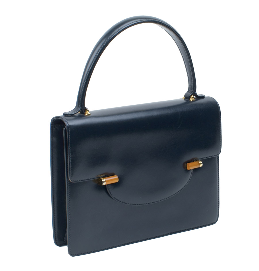 BORSA VINTAGE GUCCI IN PELLE DI VITELLO BLU 27x22 cm.