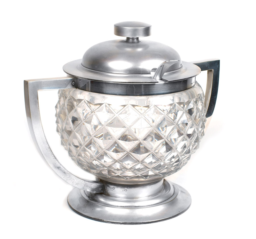 GRANDE COPPA PER IL PUNCH A DUE MANICI Francia, periodo Decò in cristallo...