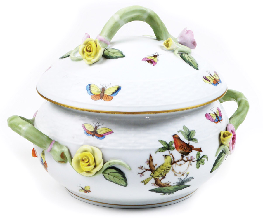 LEGUMIERA IN PORCELLANA HEREND Ungheria, XX Sec. decoro Rothschild, forma...