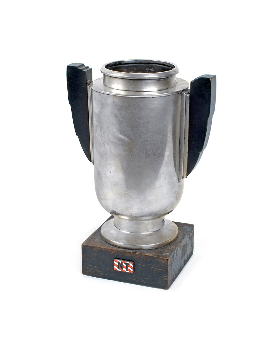 PARTICOLARE COPPA IN ARGENTO Italia, periodo decò a corpo liscio, manici e base in legno ebanizzato, h. cm. 23 Peso lordo 765 gr.