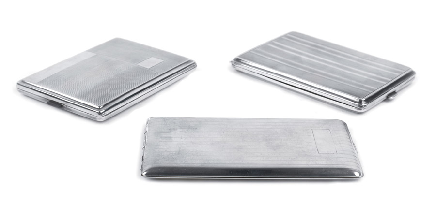 TRE SCATOLE PORTA SIGARETTE IN ARGENTO inizio XX Sec. fogge, misure e manifatture diverse peso 373 gr.