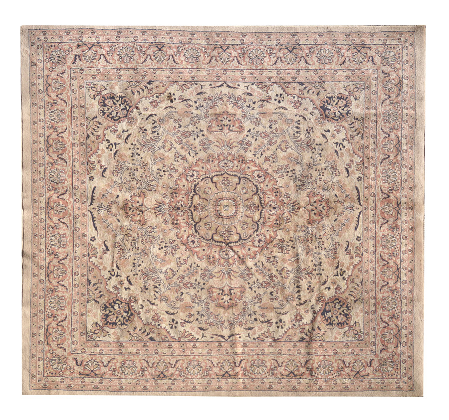 TAPPETO AGRA India, XX Sec. decorato a motivi floreali su fondo chiaro 200x200 cm.