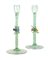 COPPIA DI CANDELIERI Murano, XX Sec. in vetro trasparente e verde, decorati...