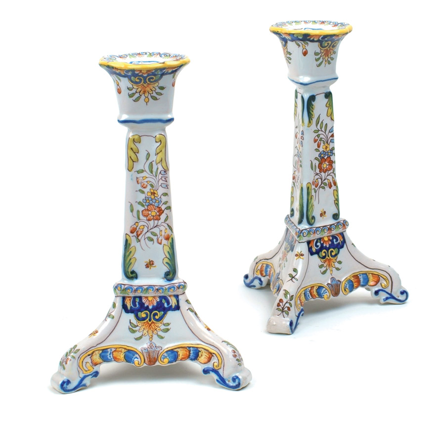 Lot 489 | COPPIA DI CANDELIERI IN CERAMICA Italia, XX Sec. smaltata e decorata in...