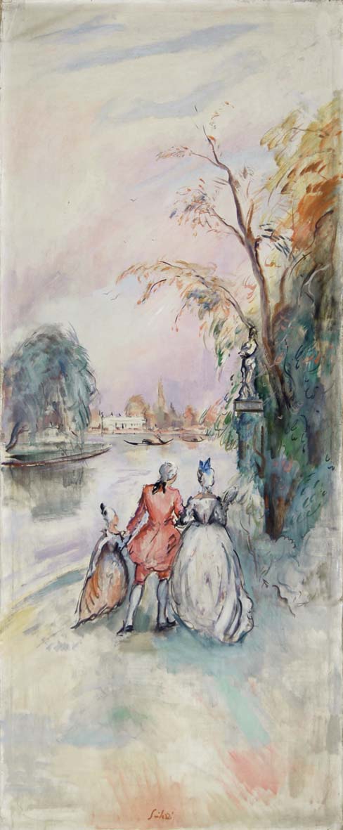 Lot 185 | SEIBEZZI FIORAVANTE Venezia 1906 - 1975 Passeggiata in villa olio su tela...