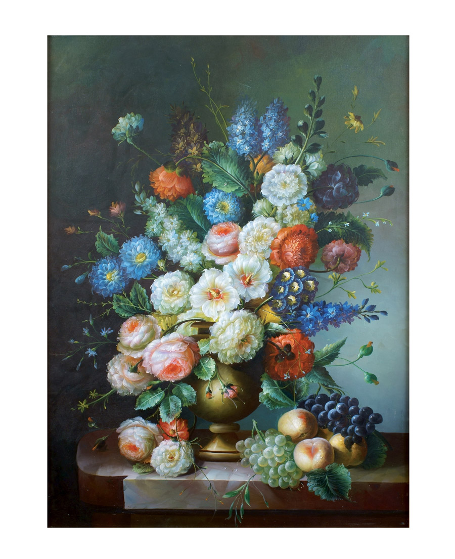 S. ALESSI Italia, XX Sec. "Natura morta di fiori", da un pittore fiammingo del XVII secolo, olio su tela, entro cornice dorata 120X90 cm.