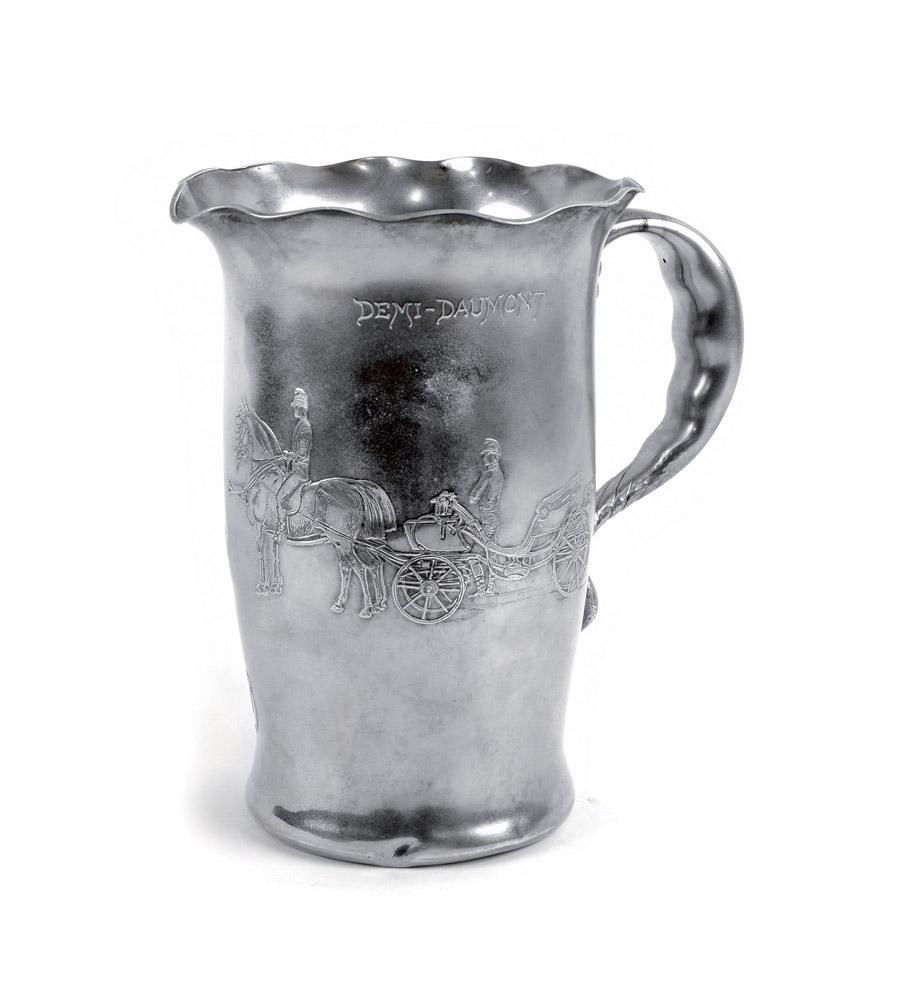 PARTICOLARE VERSATOIO IN ARGENTO, TIFFANY & CO. Usa, New York, 1883 corpo decorato con monogramma inciso a motivi naturalistici e di hippomobile, manico sagomato, firmato sotto la base, h. cm. 20 peso 692 gr.