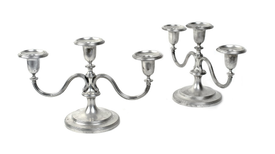 COPPIA DI CANDELABRI IN ARGENTO TIFFANY & CO. Usa, New York, inizio XX Sec. base circolare con stelo a tre fiamme, profili godronati, firmati sotto la base, h. cm. 19,5 peso 1733 gr.
