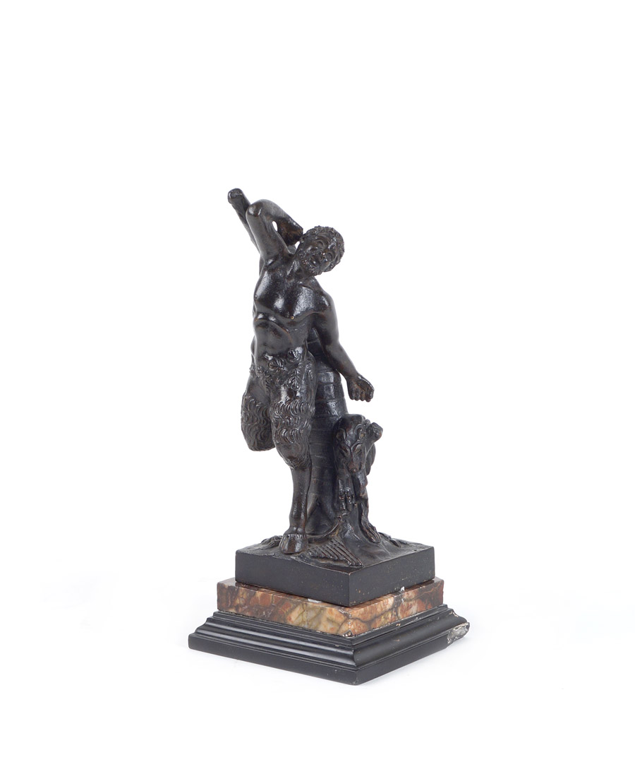 DA PIERRE LEGROS XVIII Sec. scultura in bronzo raffigurante "Marsia" poggiante su base in marmo Africano e nero del Belgio h. 20 cm.