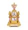 OROLOGIO DA TAVOLO IN BRONZO DORATO Francia, XIX Sec. e finemente cesellato con applicazioni e quadrante in porcellana di Sevrès dipinta in policromia a motivi floreali e di personaggi 38x24x11 cm.