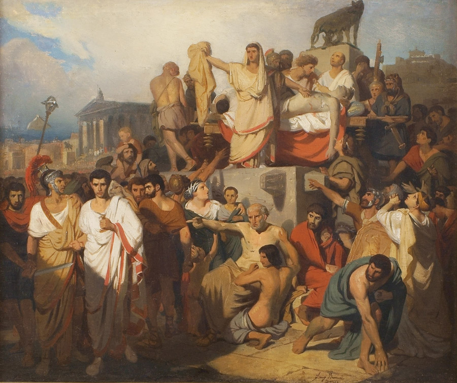LUIGI BAZZANI Bologna 1836 - Roma 1927 "La morte di Cesare", olio su tela,...