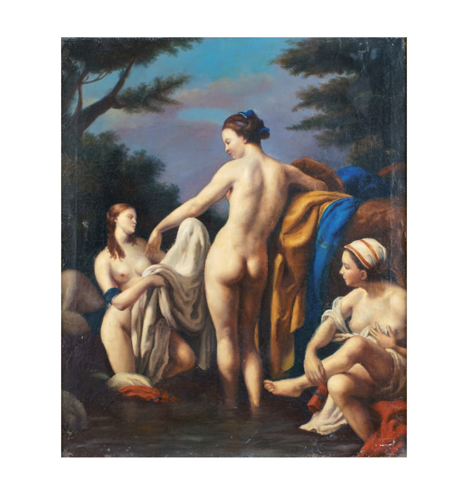 SCUOLA ITALIANA XX Sec. "Le bagnanti", olio su tela, entro cornice 73x60 cm.