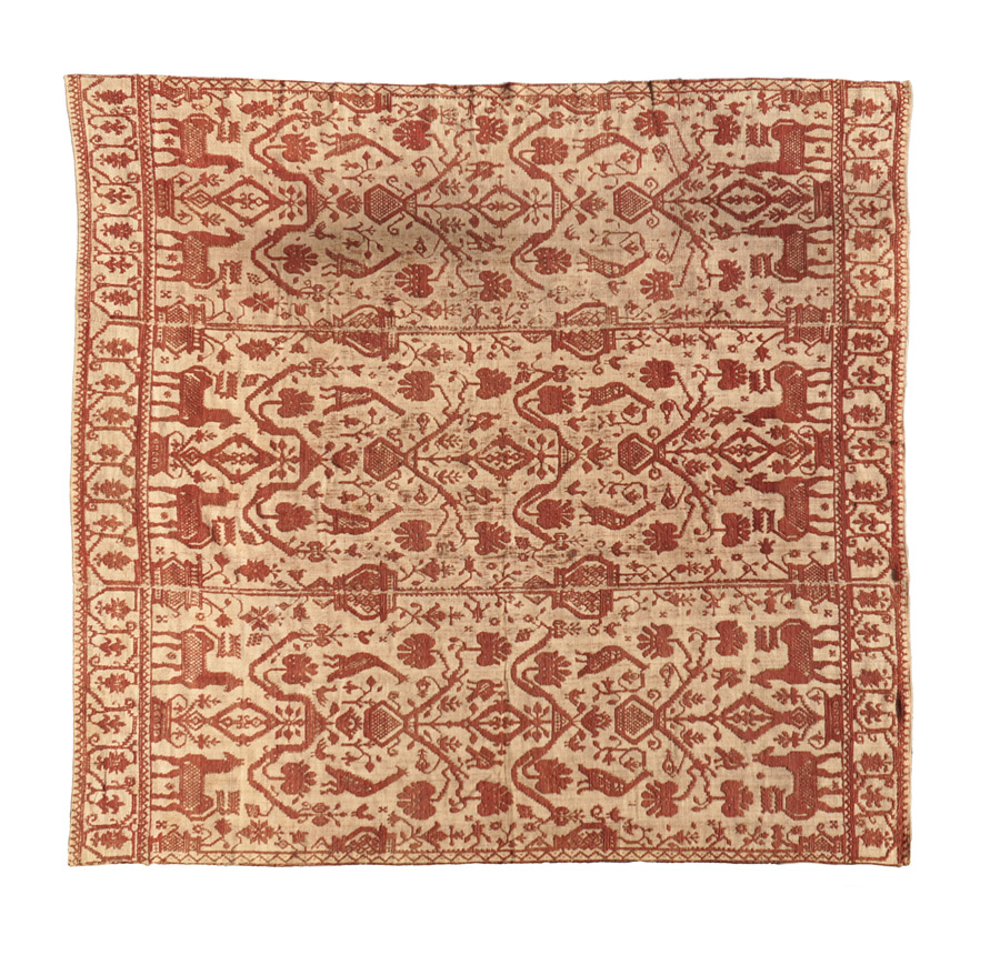 PARTICOLARE ARAZZO SARDO XX Sec. tessuto a motivi floreali e di animali, lievi difetti 264x84 cm.