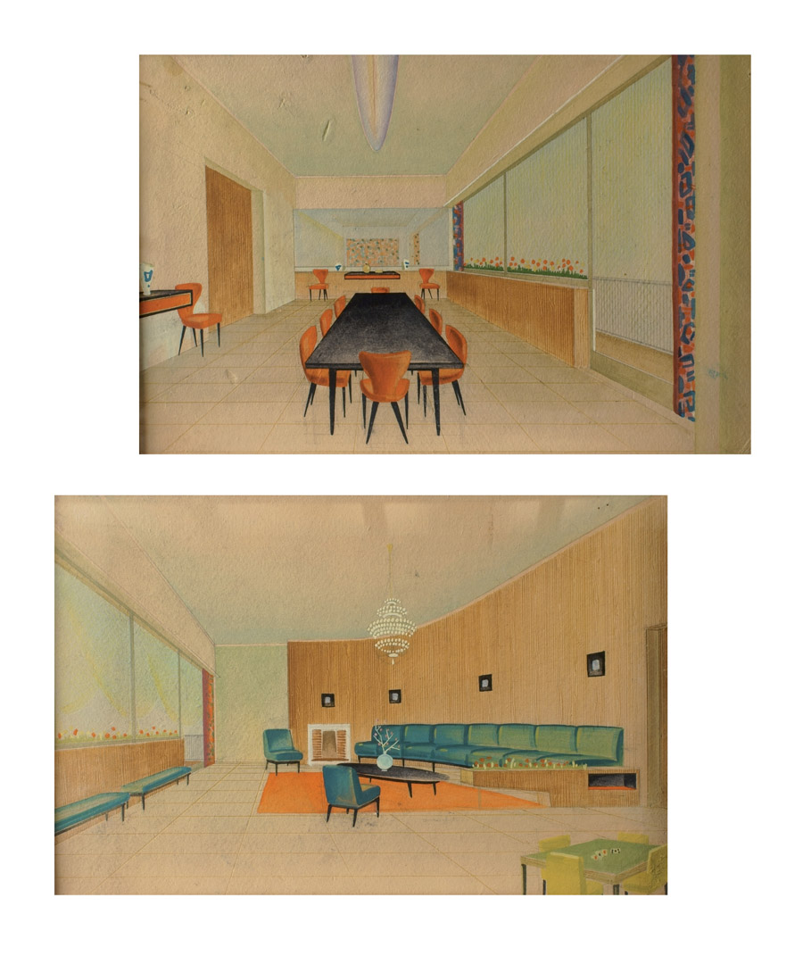 COPPIA DI BOZZETTI Italia, anni 50 "Razionalismo esempio di casa ai Parioli,...