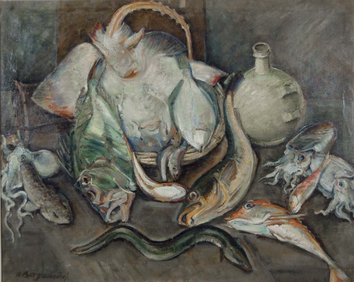 BERGAMINI ALDO Bottrighe 1903 - Venezia 1981 Natura morta (anni '40) olio su tela 80x100 cm firma in basso a sinistra
