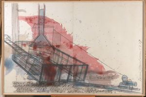 OPPENHEIM DENNIS Electric City 1938-2011 New York Study for Saturn up 1979 Disegno su carta 128x194 cm Firma e data a destra. Titolo da sinistra verso destra Autentica dell'artista su fotografia Galleria Yvon Lambert, Parigi, etichetta al retro Drawing on paper Signature and date on the right. Title from left to right