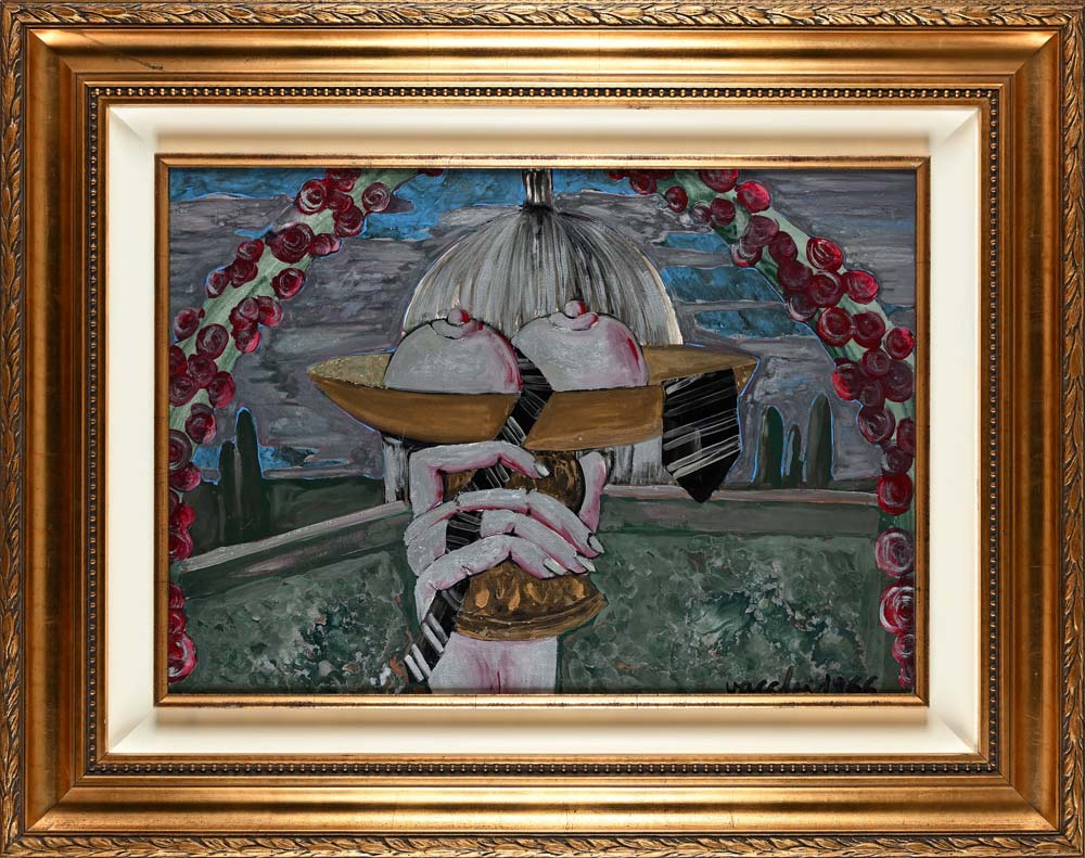 Senza titolo (Allegoria di Sant'Agata) 1966 Firma e data in basso a destra "Vacchi 1966" Olio e smalti su carta applicata su tela cm 50x70 - in cornice cm 81x101