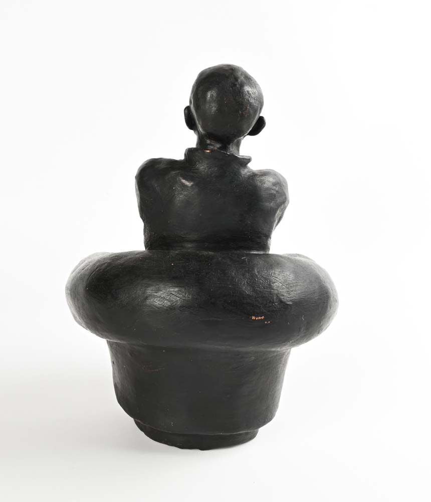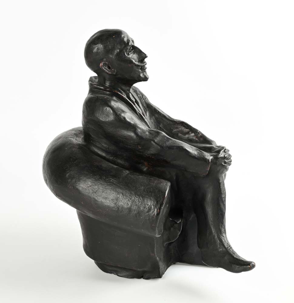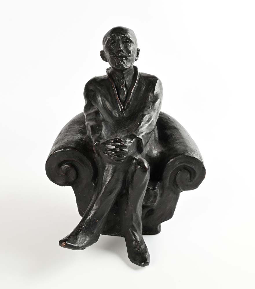 Ritratto di Gabriele D'Annunzio seduto in poltrona Scultura in terracotta dipinta di nero cm h 30x23x30
