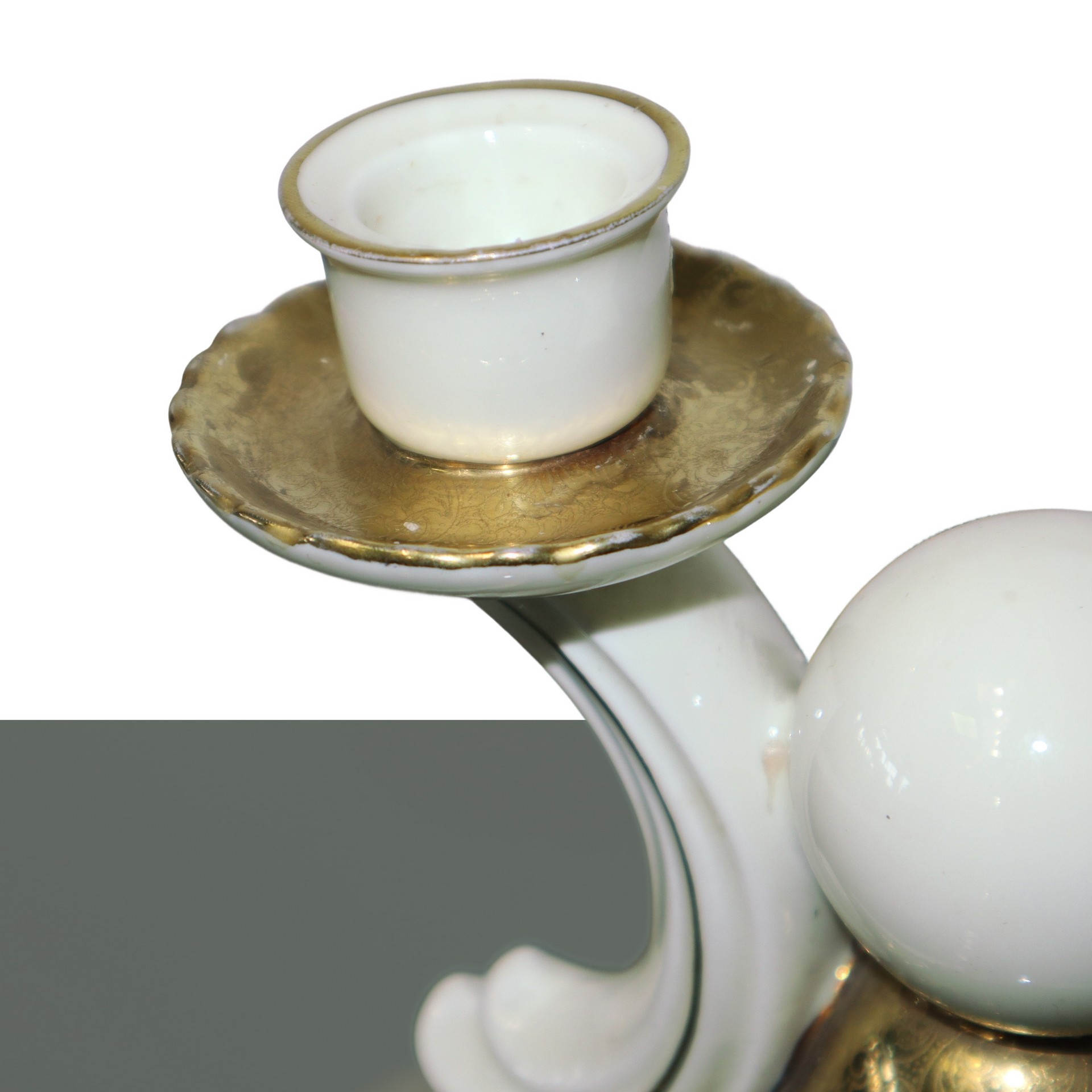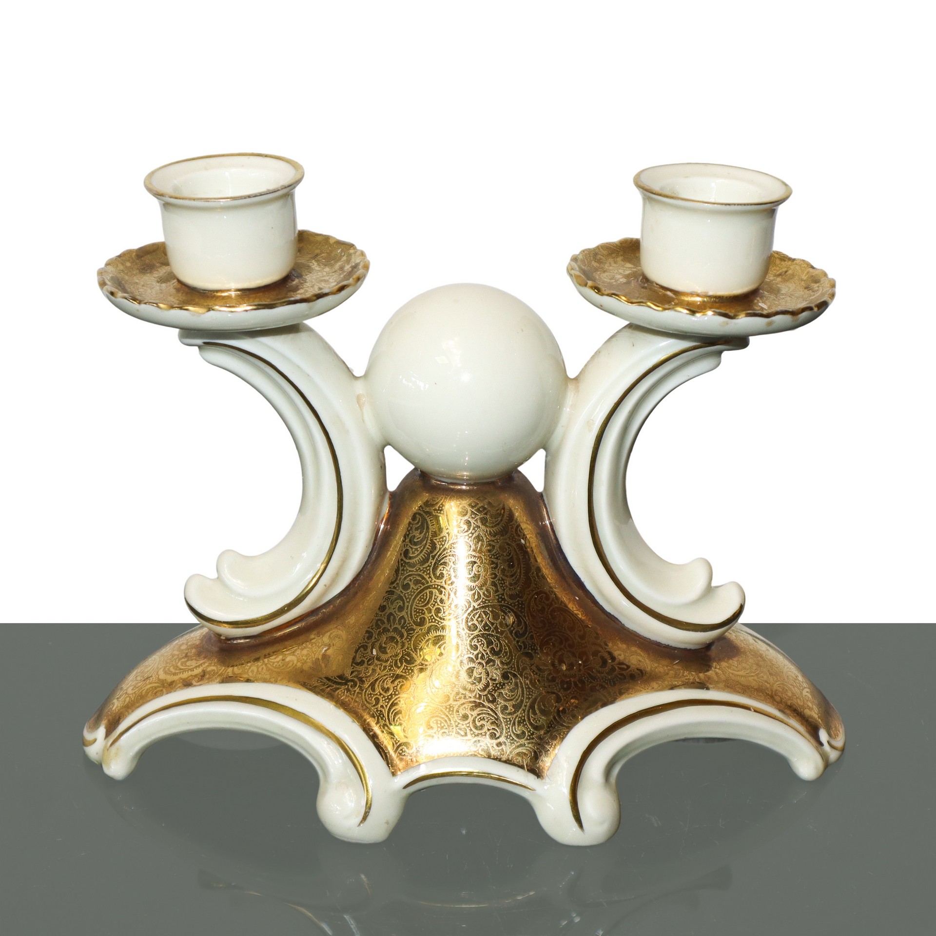 Alka Kunst Kronach Bavaria - Coppia di candelieri in ceramica con decori dorati h cm 15X19 Marchio della manifatura alla base