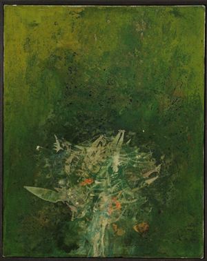 SARONI SERGIO 1934-1991 Un'intenso verde 1963 Olio su tela 50x40 cm Firma in basso al centro Firma, data e titolo al retro Autentica di Anna Maria Leone Saroni su fotografia Oil on canvas Signature at the bottom center Signature, date and title to the back