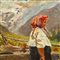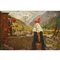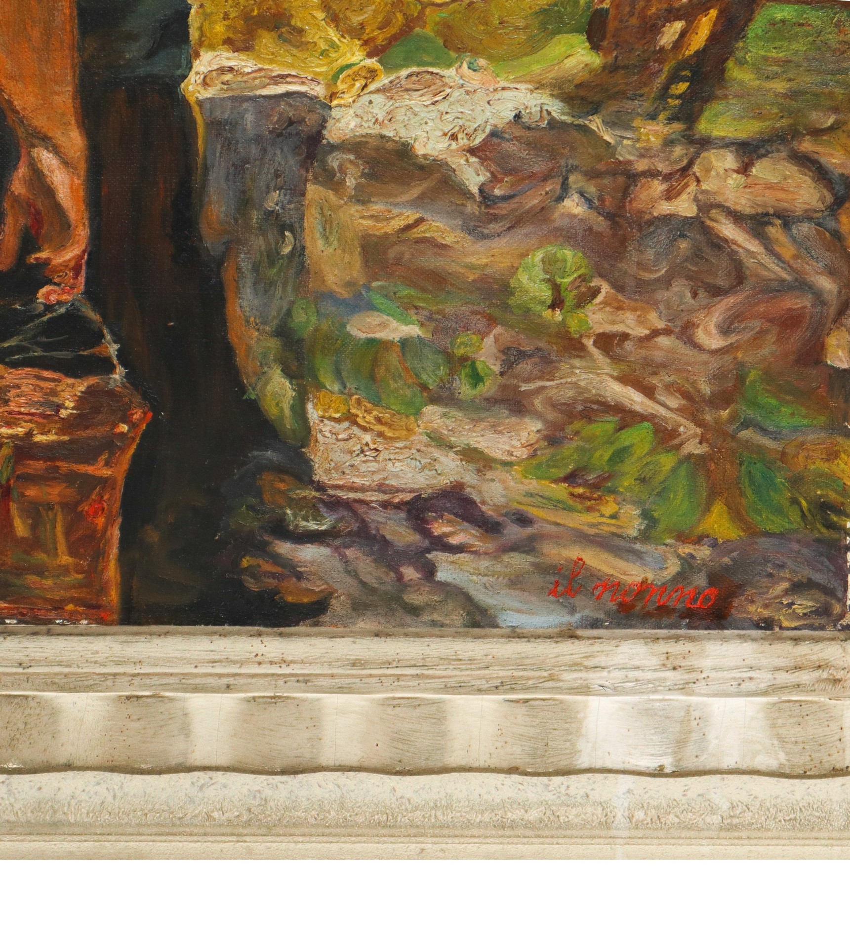 Contadini alla fonte, 20° secolo h cm 50X76 in cornice h cm 66X91 olio su tela