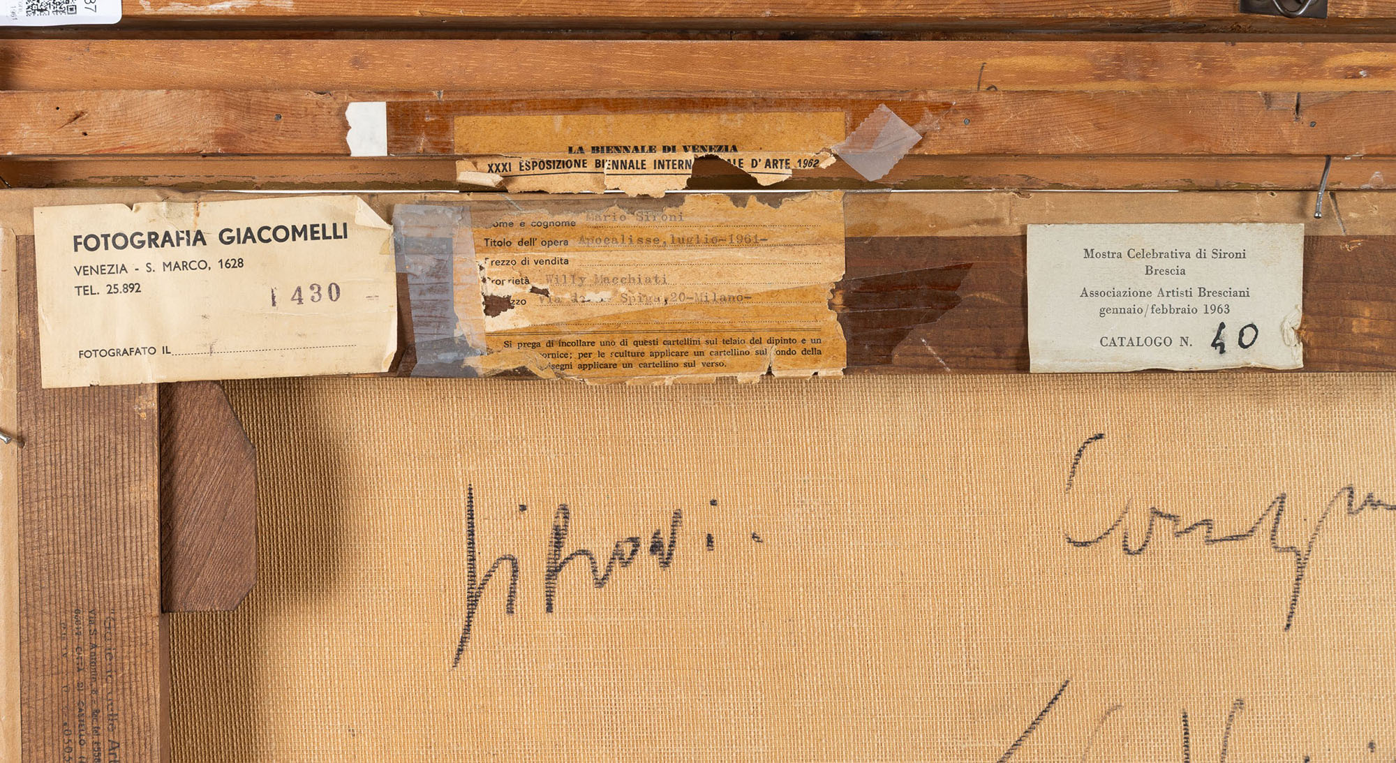 Opera registrata presso l'Associazione per il Patrocinio e la Promozione della Figura e dell’Opera di Mario Sironi, Milano, con il numero 40/21 RA in data 30 marzo 2021