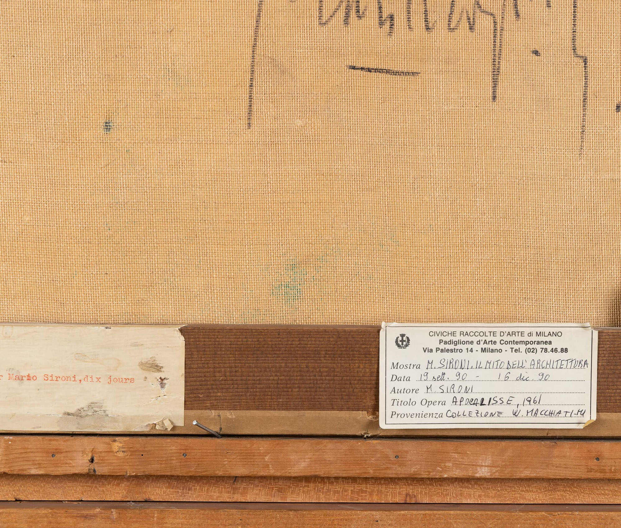 Marco Valsecchi, Mario Sironi, Edizioni Editalia, Roma, 1962, p. 128, ill. 72, Sironi, catalogo della mostra, Torino, Galleria d'Arte La Bussola, 1962, n. 42, Otto artisti italiani, catalogo della mostra, Rotterdam, Museum Boymans van Beuningen, 1964, Mario Sironi. Il mito dell'architettura, catalogo della mostra, Milano, Padiglione d'Arte Contemporanea, 1990, Mario Sironi 1885 - 1961, catalogo della mostra, Roma, Galleria Nazionale d'Arte Moderna, 1994, Sironi, Gli anni '40 e '50. Dal crollo dell'ideologia agli anni dell'Apocalisse, Fondazione Stelline, Milano, 2008, p. 222-223, Mario Sironi 1885 - 1961, catalogo della mostra, Roma, Complesso del Vittoriano, 2015, p. 272-273, Sironi, Galleria d'Arte La Bussola, Torino, febbraio 1962, XXXI Esposizione Biennale Internazionale d'Arte, Retrospettiva di Mario Sironi, Venezia, 16 giugno - 7 ottobre 1962, Mostra Celebrativa di Sironi, Brescia, Associazione Artisti Bresciani, gennaio - febbraio 1963, Otto artisti italiani, catalogo della mostra, Rotterdam, Museum Boymans van Beuningen, 8 maggio - 14 giugno 1964, IX Quadriennale Nazionale d'Arte di Roma, Roma, Palazzo delle Esposizioni, 20 novembre 1965 - 31 marzo 1966, Mario Sironi. Il mito dell'architettura, catalogo della mostra, Milano, Padiglione d'Arte Contemporanea, 19 settembre - 4 novembre 1990 Mario Sironi 1885 - 1961, catalogo della mostra, Roma, Galleria Nazionale d'Arte Moderna, 9 dicembre 1993 - 27 febbraio 1994, Sironi, Gli anni '40 e '50. Dal crollo dell'ideologia agli anni dell'Apocalisse, Milano, Fondazione Stelline, 29 febbraio - 25 maggio 2008, Mario Sironi 1885 - 1961, catalogo della mostra, Roma, Complesso del Vittoriano, 4 ottobre 2014 - 8 febbraio 2015