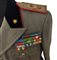 Giubba e pantaloni m.34 per un generale di divisione. Giubba in cordellino grigio/verde con bavero di velluto di seta nero bordato di rosso, la giubba presenta al braccio destro ben cinque distintivi di ferita di guerra, oltre ad un importante petto di nastrini su cui spicca l'ordine militare di Savoia, pantaloni con doppia banda nera filettata di argento; in ottimo stato.