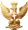 Fregio per il caschetto delle Guardie a cavallo della città di Roma. Lamierino di ottone stampato con applicato al petto scudetto smaltato; in ottimo stato, raro.