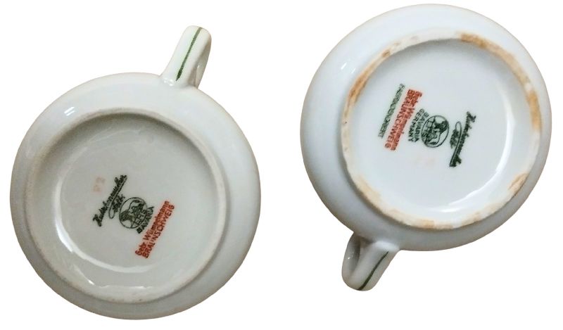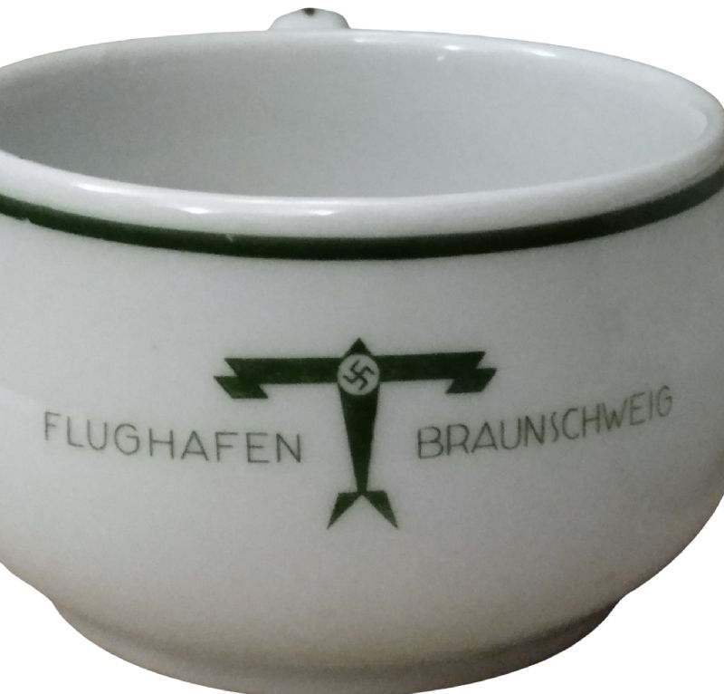 Lotto di 2 tazze da caffè con impresso il logo dell' NSFK e dell'aeroporto di Braunschweig marcate sul fondo "BAVARIA GERMANY". In ottimo stato, molto particolari e rare.