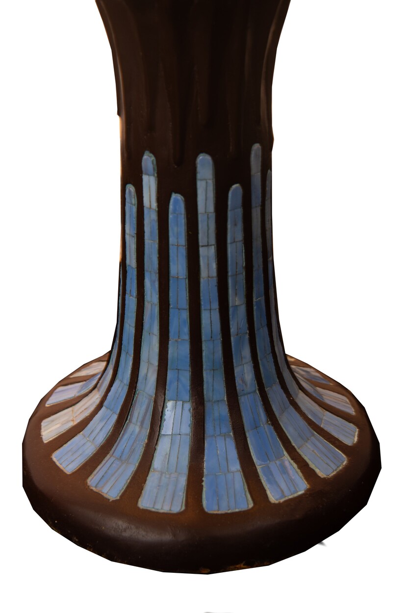 Lampada da tavolo nello stile Lampada da tavolo nello stile Tiffany XX secolo bronzo e tessere di vetro H. 74 x 50 cm