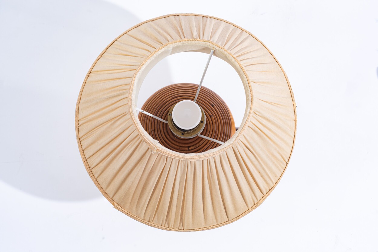 Gabriella Crespi (stile di) (1922 - 2017) Lampada da tavolo Anni '70 del XX secolo ottone e vimini 22 x 15 cm