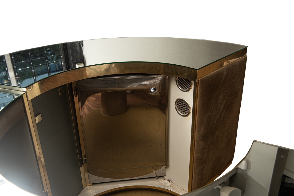 Willy Rizzo (stile di) (1928 - 2013) Mobile Bar con sgabello anni '70 del XX...
