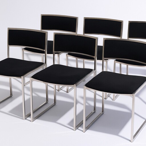 Willy Rizzo (1928 - 2013) Sei sedie anni '70 del XX secolo metallo cromato e...