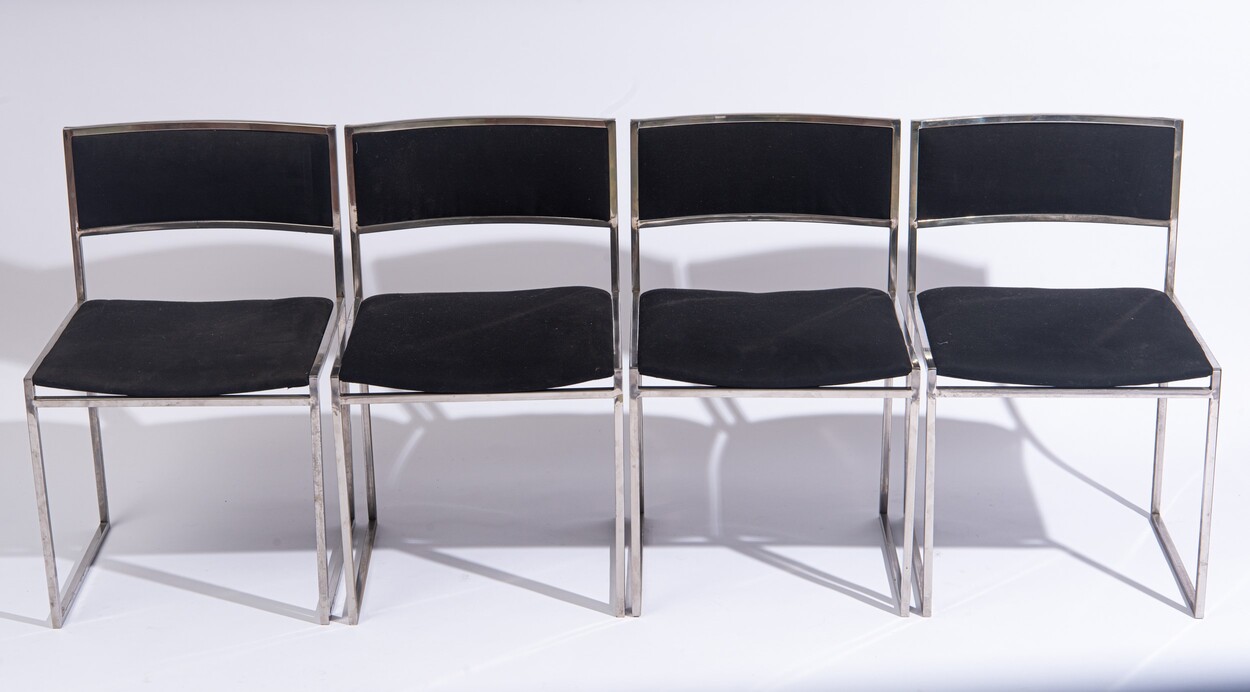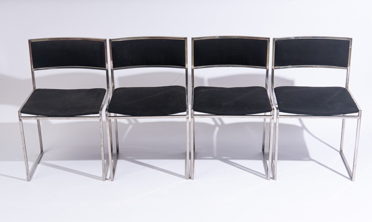 Willy Rizzo (1928 - 2013) Sei sedie anni '70 del XX secolo metallo cromato e metallo imbottito 82 x 47 x 48 cm