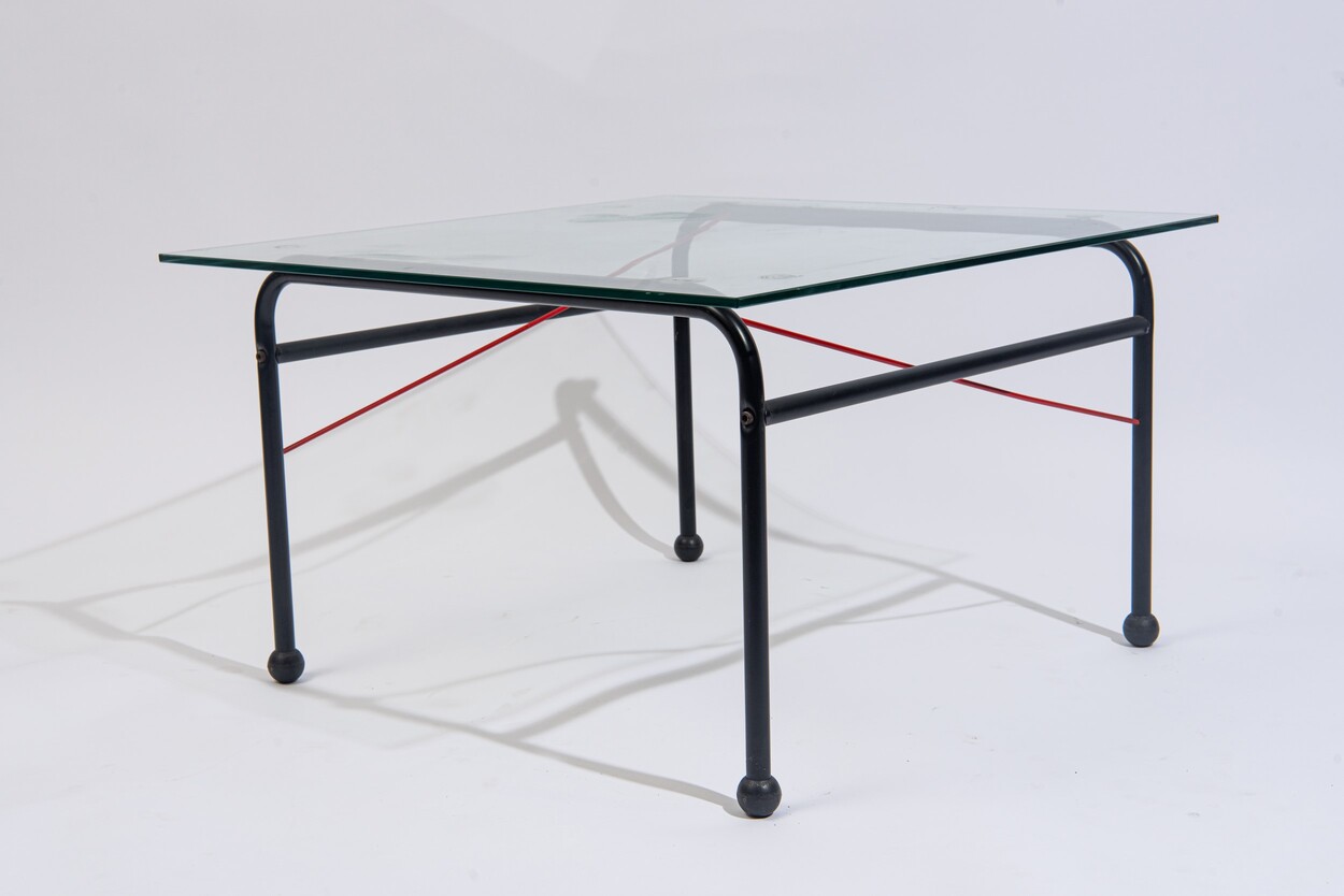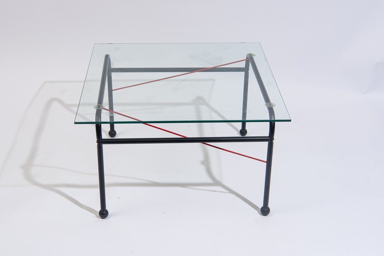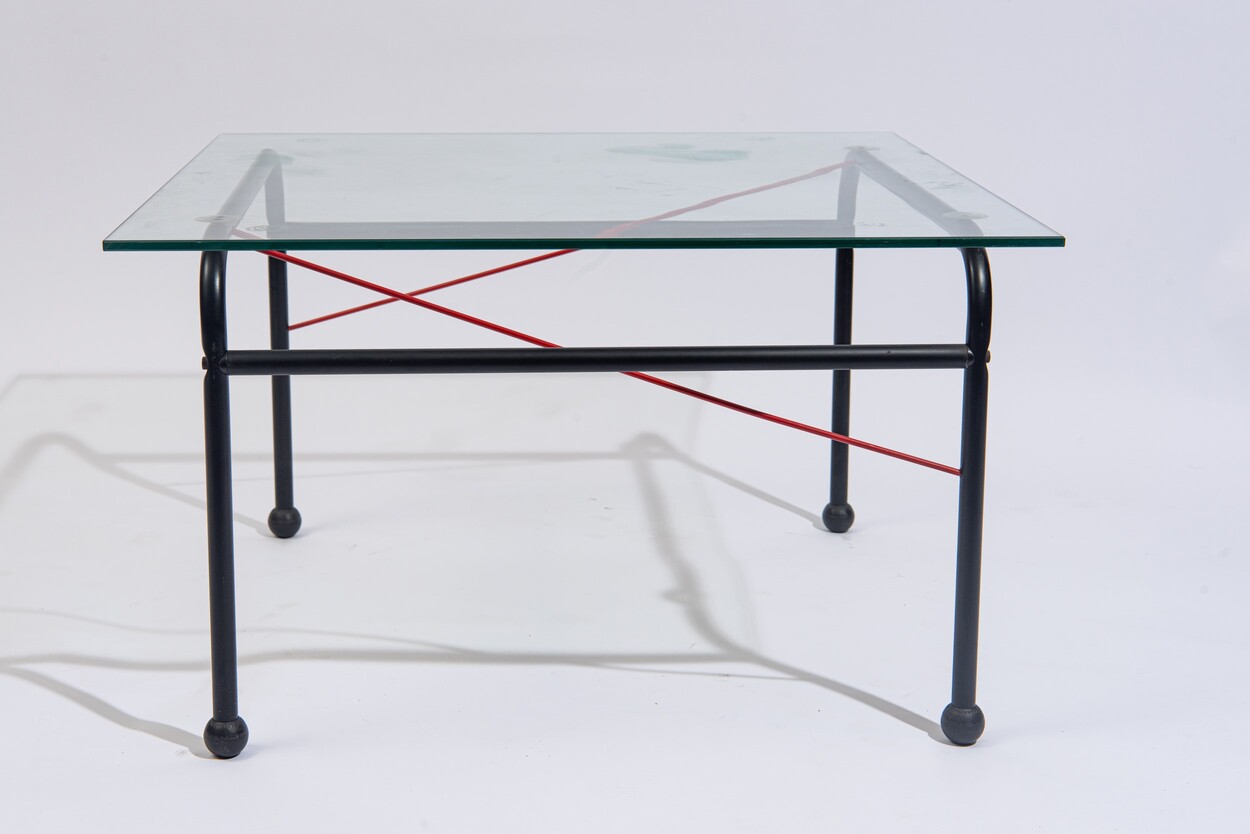 Design Sweden Slim Innovator - Design Sweden Slim Innovator - Tavolino da caffè, mod. "Black and red" 1980 ca. vetro e ferro laccato H. 41 x 66 x 66 cm
