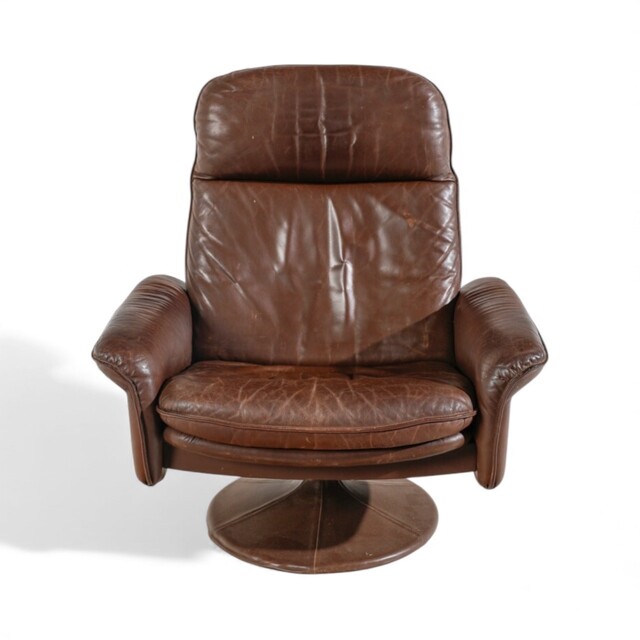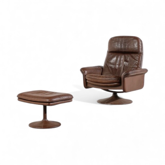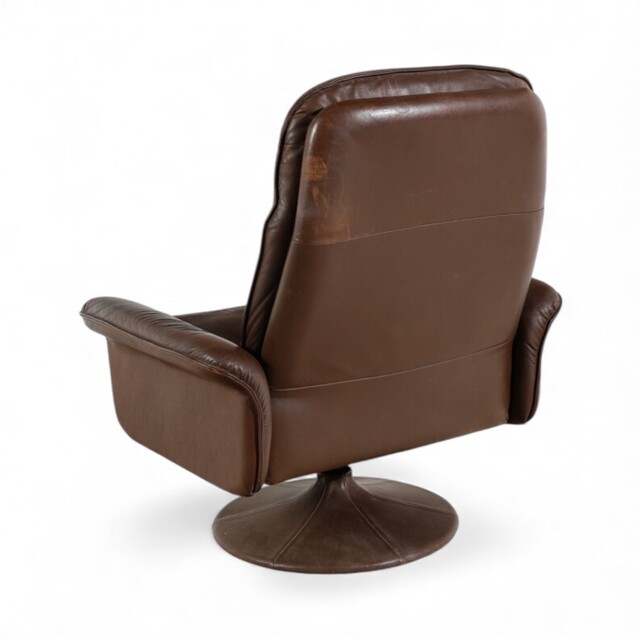 Poltrona con Poggiapiedi Anni '70 Poltrona con Poggiapiedi Anni '70 del XX secolo pelle e metallo poltrona: 100 x 97 x 80 cm; 60 x 43 x 40 cm