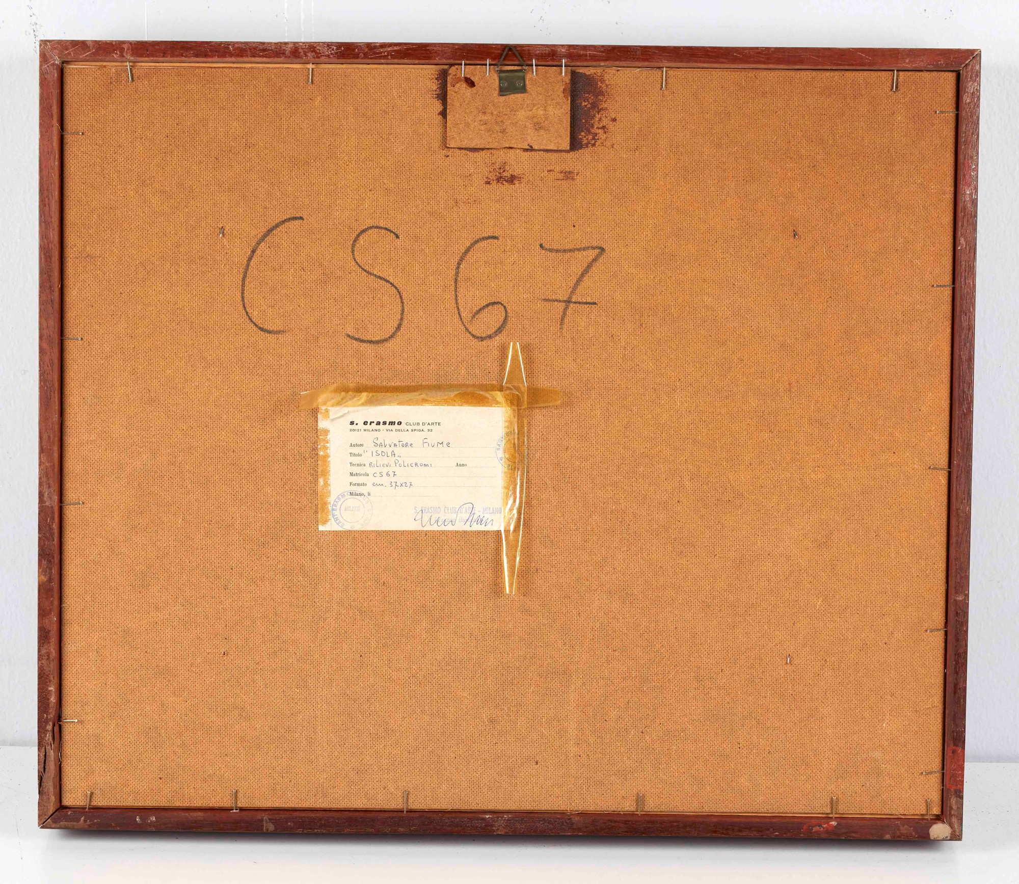 SALVATORE FIUME (Comiso 1915 - Milano 1997) "Isola". Olio e gesso a rilievo su tavola. Cm 27x37. Opera firmata in basso a destra Fiume. Al retro reca etichetta della Galleria S. Erasmo Club d'arte, Milano, a firma del titolare.