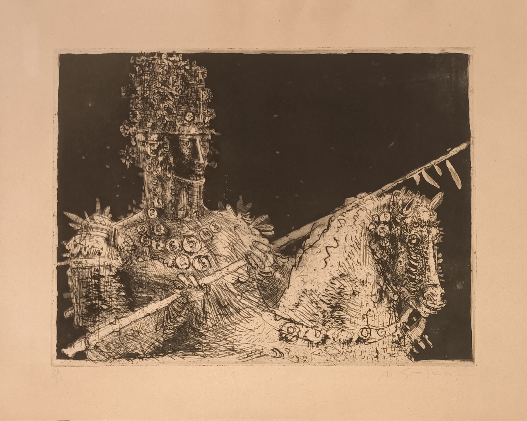 GRASSMANN MARCELO San Paolo (Brasile) 1925 Cavaleiro Incisione su carta es....