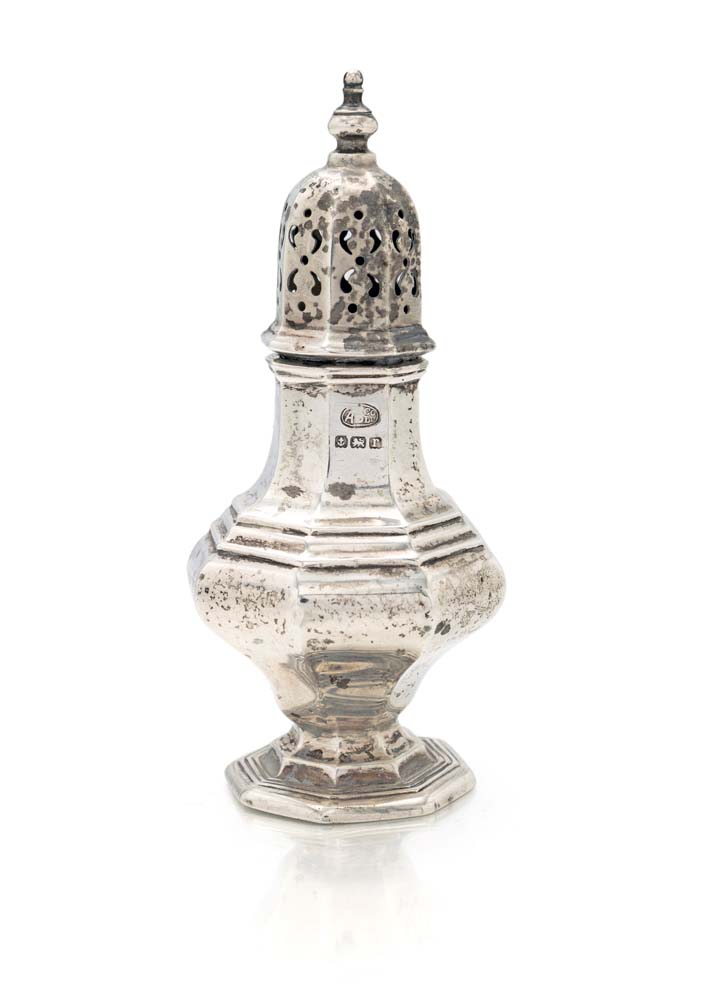 Piccola saliera in argento, Birmingham, 1916 altezza cm 8,2 - gr. 22 corpo a balaustro poliedrico su piede ottagonale gradinato