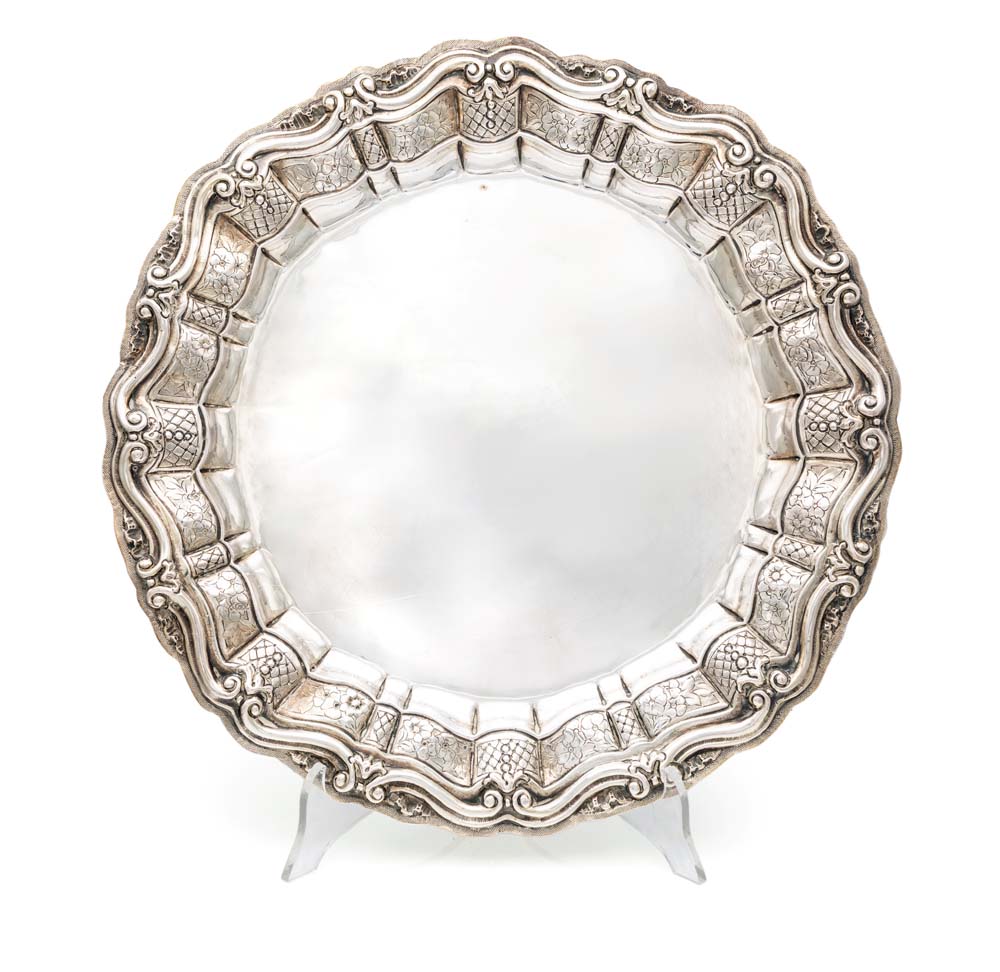 Grande piatto circolare con bordo lavorato diametro cm 40 - gr. 840