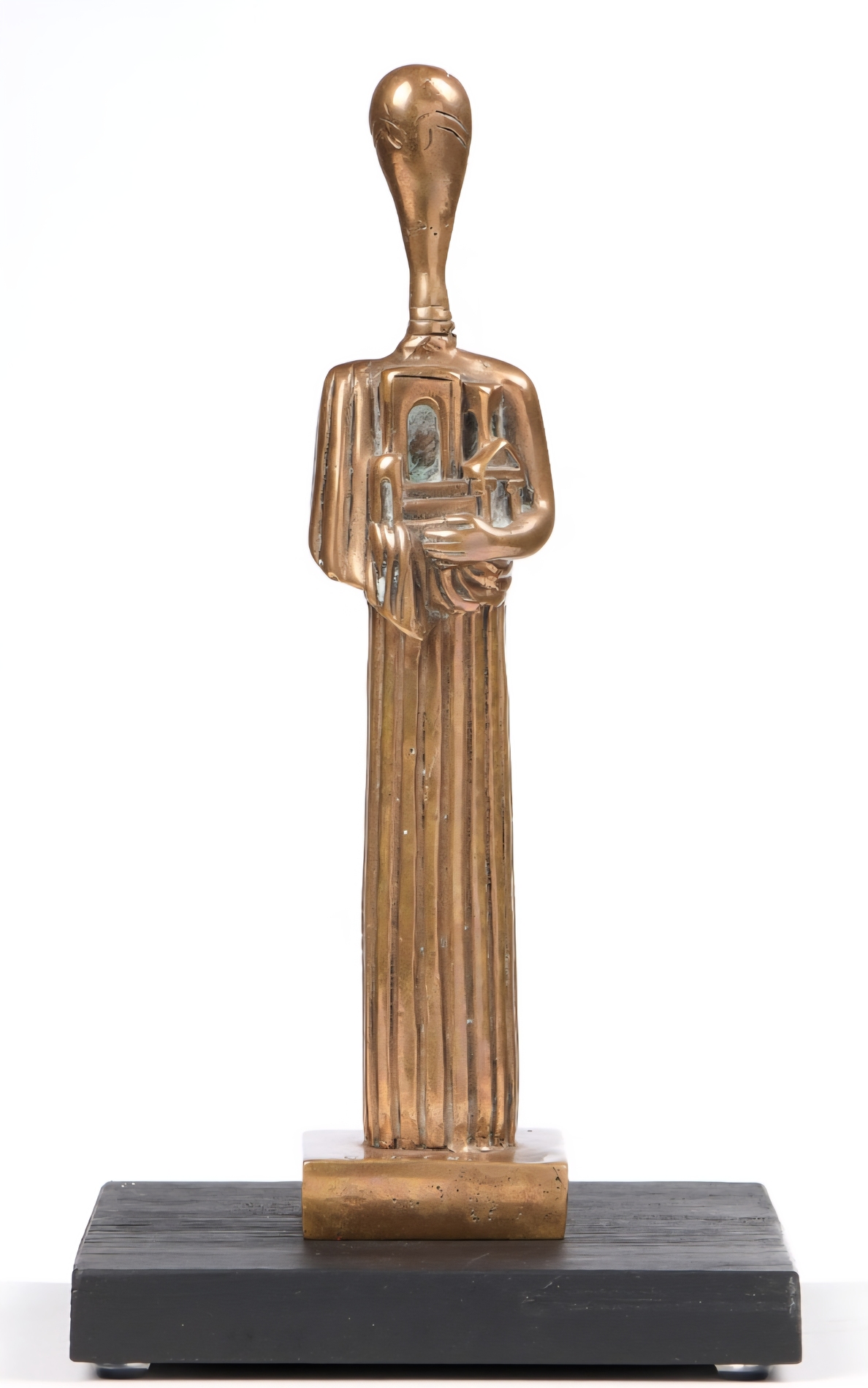 GIORGIO DE CHIRICO, 23,5 h cm, La Musa dell’antichità 1970-98, scultura in bronzo, multiplo, es. E/A, firma sulla base: G de Chirico, tiratura e punzone su un lato: E/A, Fonderia Art / F.lli Bonvicini / Sommacampagna. Realizzata nel 1998 dalla Fonderia Bonvicini . Tutte le sculture multiple recano incisa la firma dell’artista, il nome della fonderia e la numerazione. Non tutti gli esemplari sono stati realizzati prima della morte dell’artista, Isa de Chirico ha autorizzato il completamento della serie nei limiti indicati in ogni singolo tiratura.