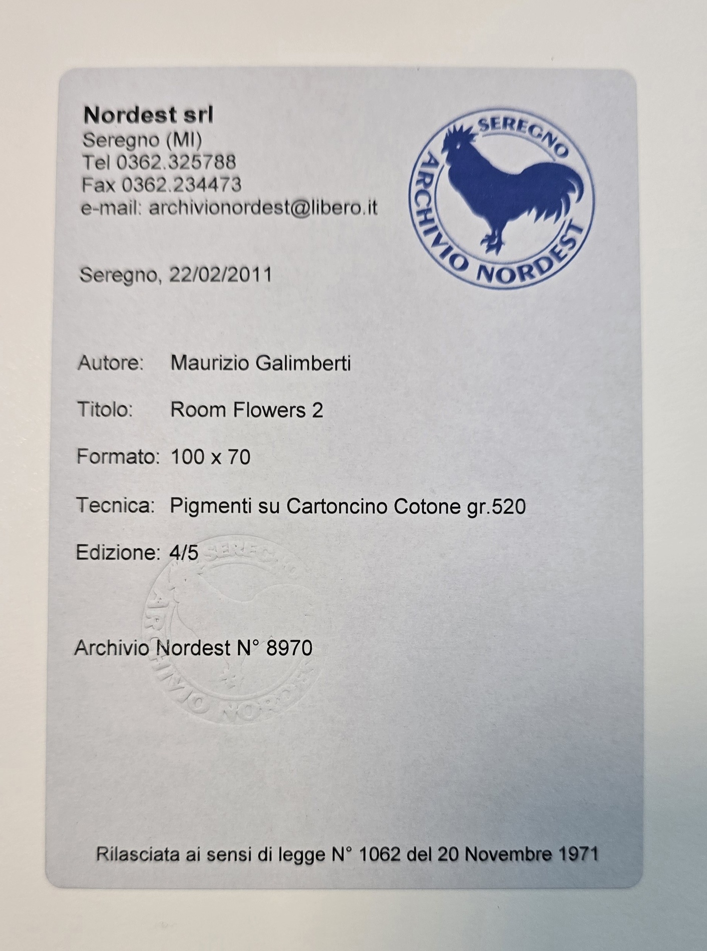 MAURIZIO GALIMBERTI, 100 x 70 cm, titolo Room Flowers 2, Pigmenti su Cartoncino Cotone gr. 520, ed. 4/5, Archivio Nordest n. 8970, bibliografia: Maurizio Galimberti Berlino pag. 286