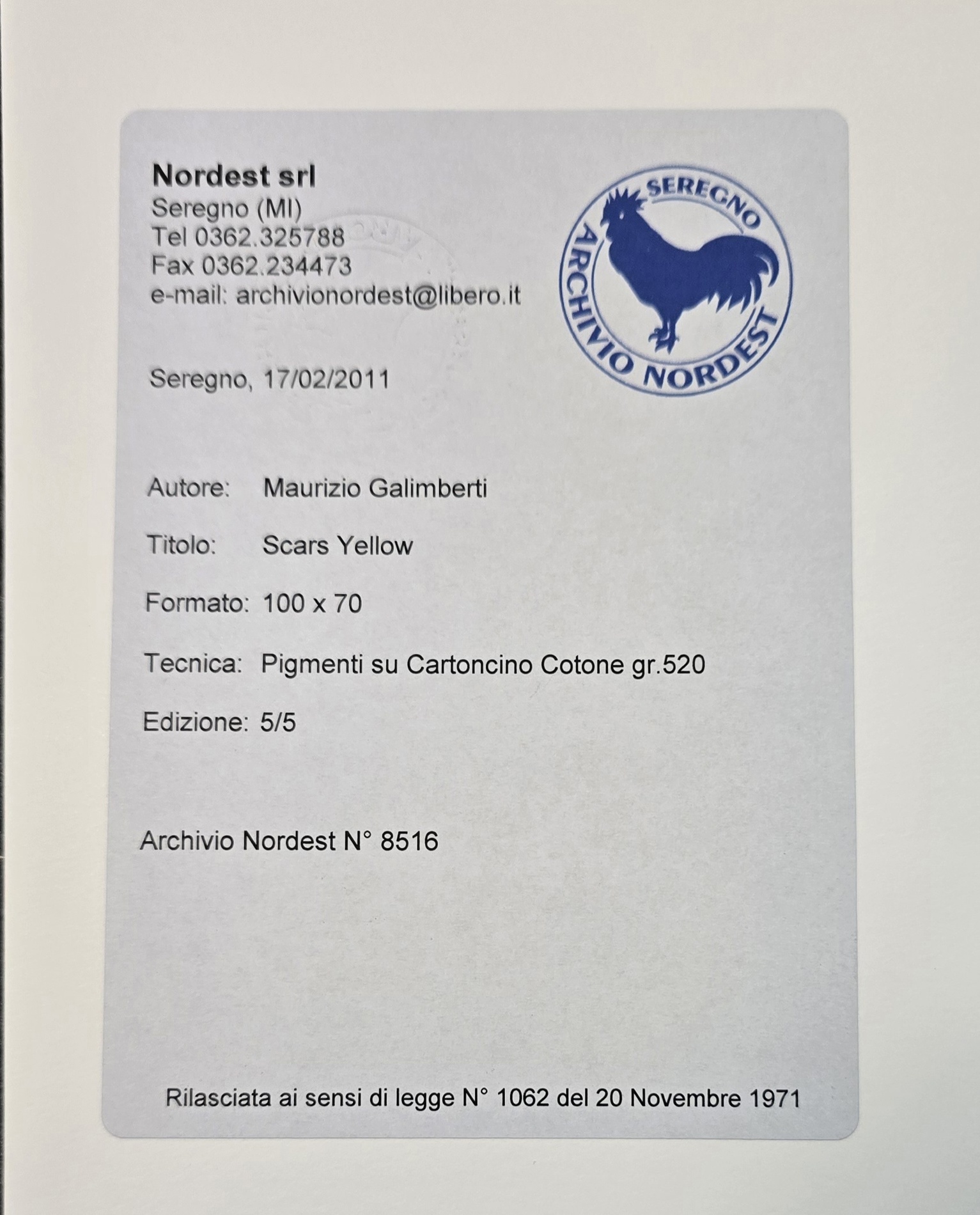 MAURIZIO GALIMBERTI, 100 x 70 cm, titolo Scars Yellow, Pigmenti su Cartoncino Cotone gr. 520, ed. 5/5, Archivio Nordest n. 8516, bibliografia: Maurizio Galimberti Berlino pag. 65