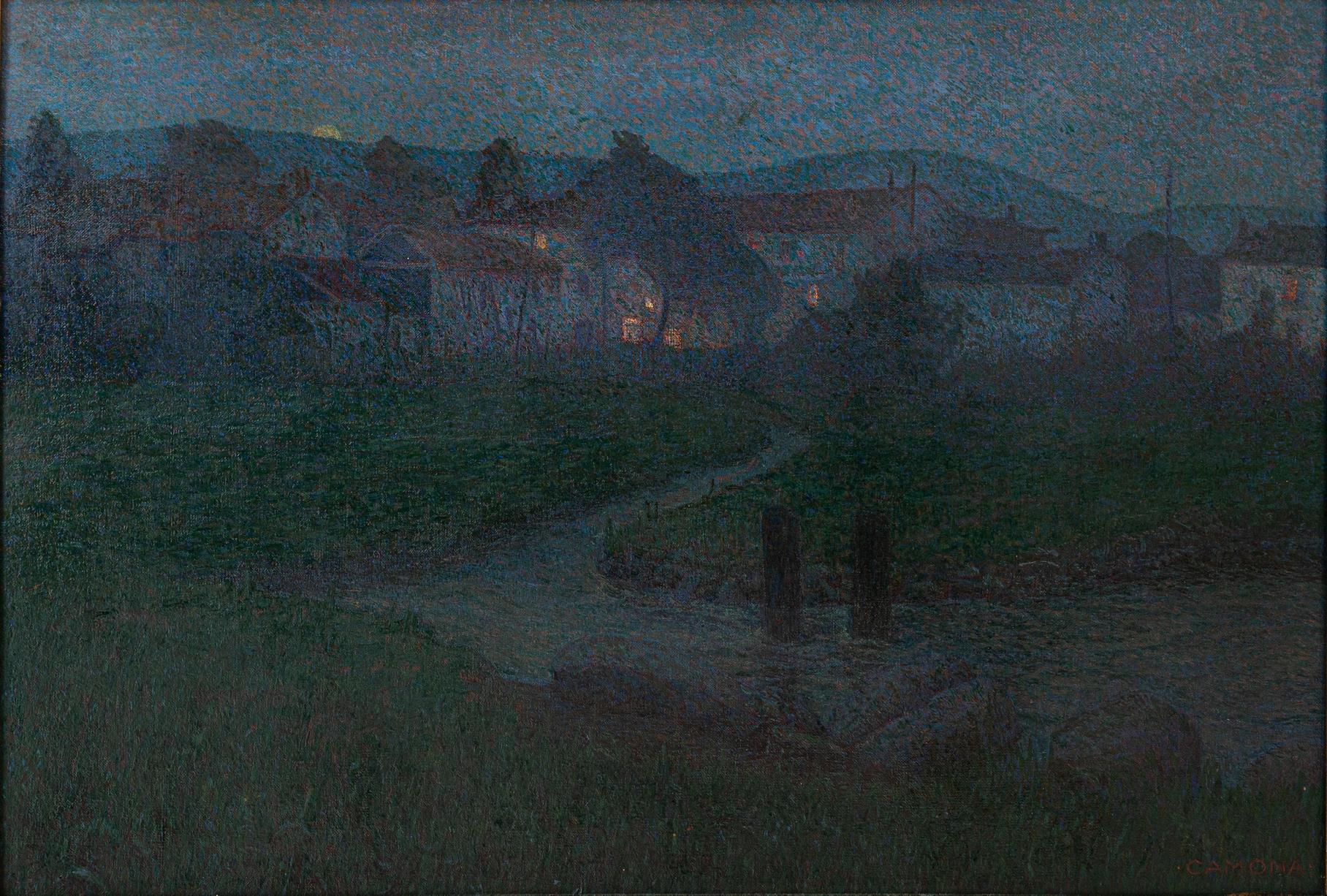 - Giuseppe Camona nacque a Milano il 9 maggio 1886 e crebbe in un ambiente sensibile alle arti, immerso nella vivace realtà culturale lombarda di inizio Novecento. La sua formazione lo portò presto a incontrare figure di rilievo del panorama artistico milanese e nel 1908 divenne allievo di Vittore Grubicy de Dragon, maestro attento alla luce, al colore e alle nuove ricerche sul paesaggio. Questo incontro segnò profondamente il suo stile e il suo modo di osservare la natura.Nei primi anni della sua attività Camona si dedicò soprattutto al paesaggio, privilegiando atmosfere pacate, sospese, ricche di sfumature cromatiche delicate. Le sue opere trasmettono un senso di quiete e di armonia, con una particolare attenzione alla luminosità e all’equilibrio tonale. Nel 1914 presentò due paesaggi all’Accademia di Brera e partecipò alla Biennale di Venezia, confermando il suo crescente riconoscimento tra i giovani artisti lombardi.Lo scoppio della Prima guerra mondiale interruppe il suo percorso artistico. Chiamato alle armi, Camona visse direttamente le difficoltà e il dramma del fronte. In quell’esperienza, tuttavia, continuò a disegnare: nacquero così le opere riunite sotto il titolo “Impressioni di guerra”. Si tratta di fogli rapidi ma intensi, privi di enfasi celebrativa, capaci di restituire la vita quotidiana dei soldati, le attese, le fatiche, i momenti di silenzio e di inquietudine. Pur immersi nella tragedia, questi lavori conservano una finezza osservativa che testimonia la sua sensibilità artistica.La sua vita si concluse prematuramente il 15 agosto 1917 a Thiene, in provincia di Vicenza, a causa di una malattia contratta durante il servizio militare.